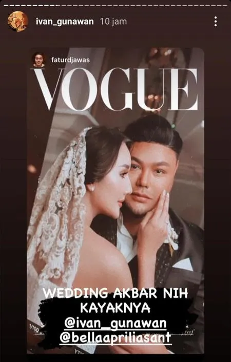 Dua foto prewedding Ivan Gunawan dan Bella Aprilia diunggah di akun Instagram terverifikasi Ruben Onsu. Presenter sekaligus perancang busana Ivan Gunawan akhirnya memberikan tanggapan soal beredarnya foto prewedding dirinya dengan model Bella Aprilia. Ia mengunggah foto prewedding Ivan Gunawan dengan Bella Aprilia dengan caption yang mengejutkan.